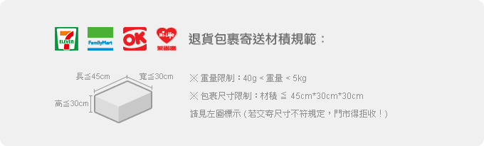 | Q1. 什麼是「只退不換」的退貨方式?如何退回? 【只退不換】 若您欲申請退貨,可參考 「7-11退貨申請流程」,及「便利達康退貨申請流程」,即可於線上即時申請退貨。